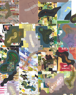 of that panel with varying amounts of fresh work- either in paint or collage- superimposed on the
